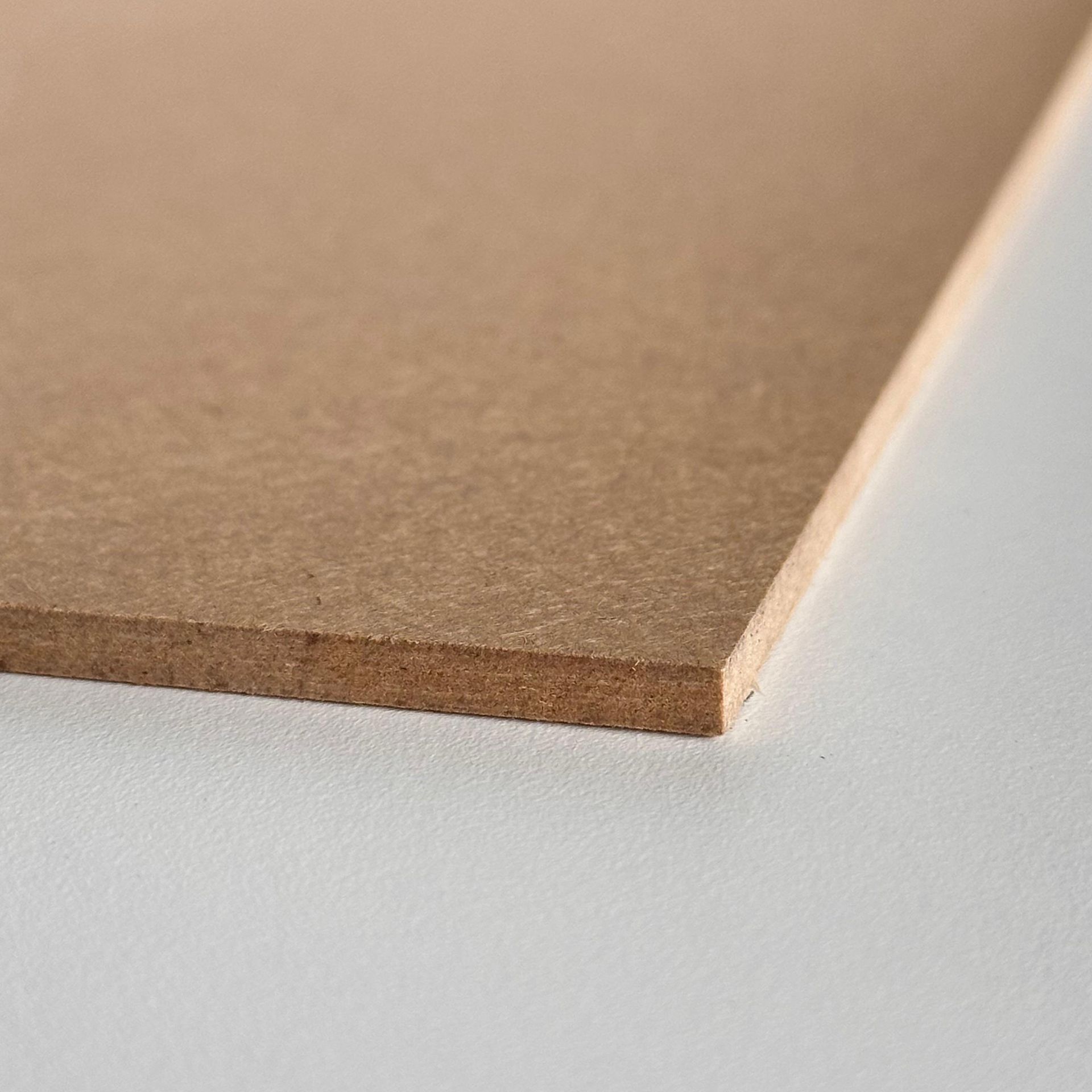 Das Material besteht aus feinen Holzfasern, die mit Harz unter hohem Druck und hoher Temperatur verpresst werden. Dadurch entsteht eine dichte Platte ohne Maserung oder Äste, mit sehr glatter und feinstrukturierter Oberfläche. Diese Eigenschaften machen HDF besonders interessant für hochwertige Beschichtungen, Lackierungen und feine Fräsarbeiten.
