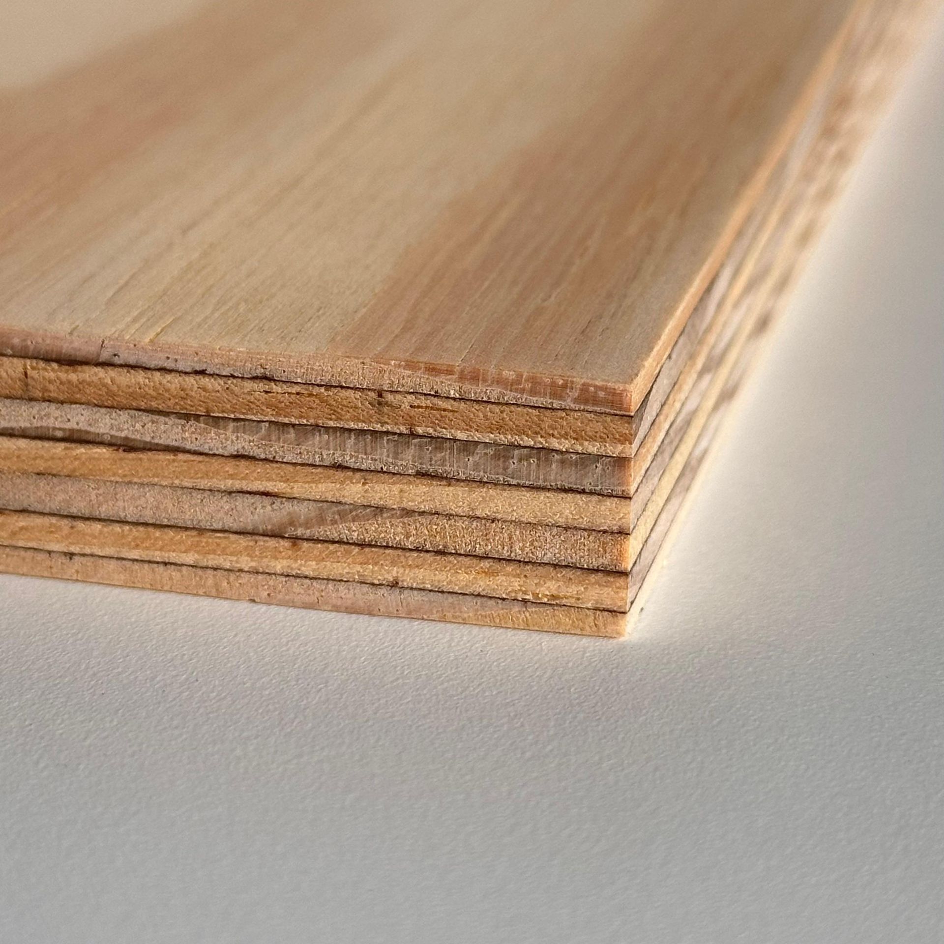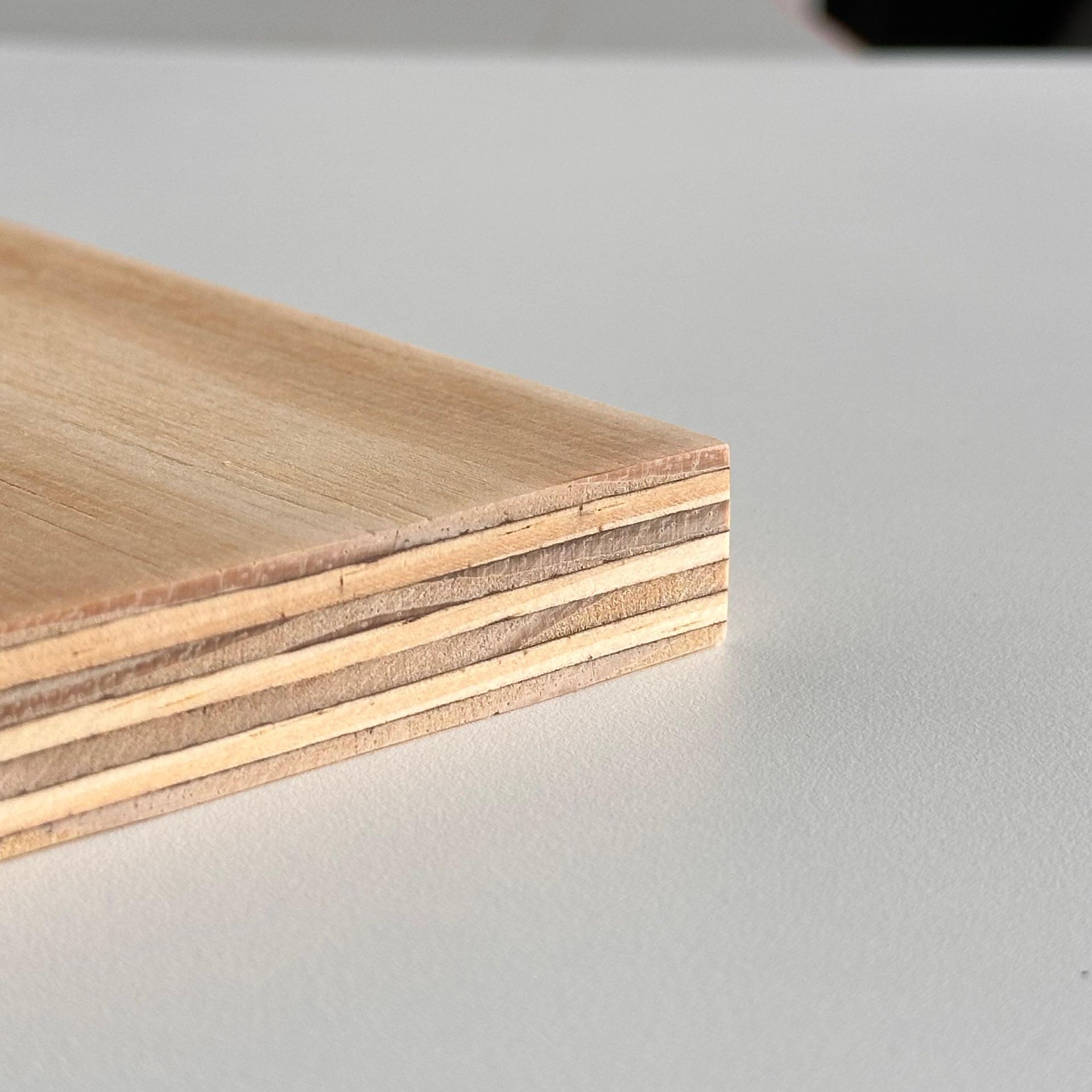 Das Material besteht aus mehreren Lagen von Kiefer Furnieren, die kreuzweise verleimt werden. Dieser Aufbau verbessert die Stabilität und reduziert das Risiko von Verzug. Je nach Ausführung können auch kombinierte Mittellagen verwendet werden. Die Oberfläche zeigt die typische helle Kieferoptik mit lebendiger Maserung.